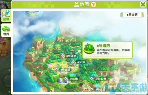 6号道路的风景是所有地图里的一绝,天气系统在这里展现的淋漓尽致,昼夜交替。6号道路连接的地图有5号道路和花之镇。无数的花海,无数的星光,无数的山川河流。