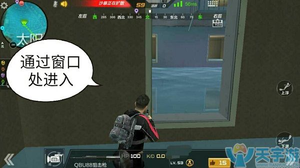 建议大家选择第三层或者第四层楼进行搜寻,我们可以通过窗口处进入房间内部,在内部的时候一定要随时环顾四周的情况,因为这个层高层建筑窗户众多,有可能会碰到从别的窗口进入的敌人,所以说我们一定要提高警惕。