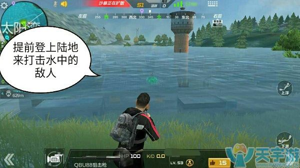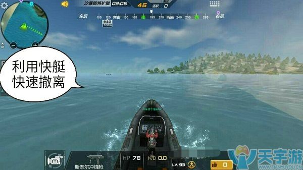 寻找到游艇之后,小伙伴们可以沿途淘汰海面上的敌人,看见海面上的敌人后加速行驶过去,可以将其直接淘汰。另外一定要记住,上岸的时候务必观察周围的情况,最好将船留在海边而不是冲上岸,不然遭到埋伏之后就没有退路了。