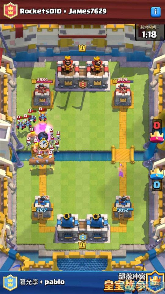 实战详解:骷髅巨人在法术和建筑的搭配上会很广泛,和很多单位都能够起到不错搭配性。首先在法术搭配中,小电和毒药具有很灵活的AOE输出能力,在我们打出骷髅巨人的组合进攻时,能够有效避免被对手人海单位防守。火箭和哥布林飞桶属于一个进攻性法术,多是在一些自闭消耗组合中,进攻中依靠着两个单位输出,防守上则是骷髅巨人凭借巨型炸弹和其单位组合解卡。