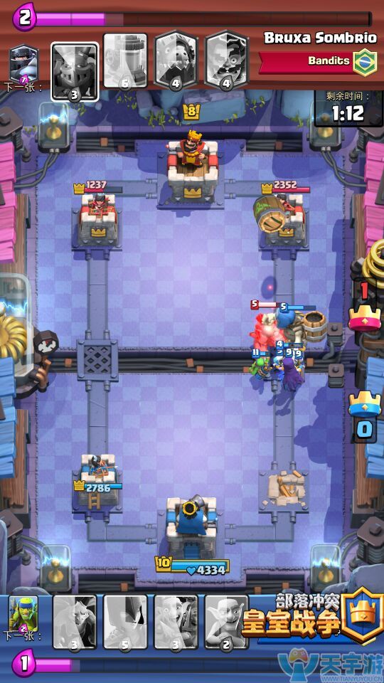 实战详解:军队卡牌的搭配上,骷髅巨人主要是和一些强势的辅攻卡形成组合进攻,利用这些单位的高输出来保护骷髅巨人更好的接近对手防御塔,以及形成组合平推!法师和女巫以及飞龙宝宝都具有很强的AOE溅射能力,是很多中阶竞技场中的黄金卡牌,在搭配骷髅巨人时,AOE的输出能够避免被对手分散单位骚扰,且女巫还能够召唤小骷髅对战。
