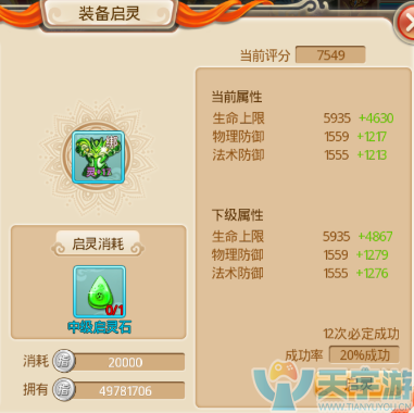 1、启灵就等于灵属性的强化,不同等级的装备有不同的强化上限。且启灵有成功率,达到一定次数则必定成功。