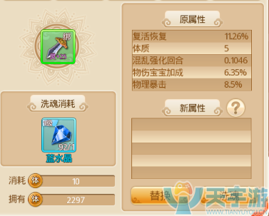 洗灵与洗魂类型,就是刷新灵的属性,从而获得最适合自己的属性。