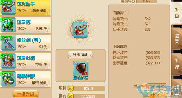 人物战力来源于装备,装备升级、启灵、升品、加工都能加很高的战力。