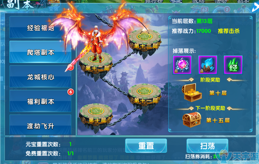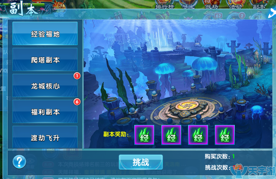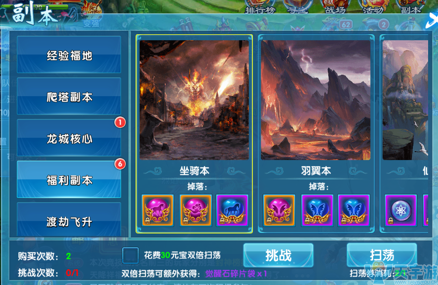 福利副本:想要获得最大的福利吗,那你可不能错过这副本。各种属性丹和进阶丹都在这等着你来领,通过选定的副本即可获得相对应的属性进阶物品!