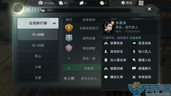 可以看到前五的就只有第五是个武当前四都被华山拿下了,42-69的排行榜都没有一个武当全是华山除了第四是个少林!