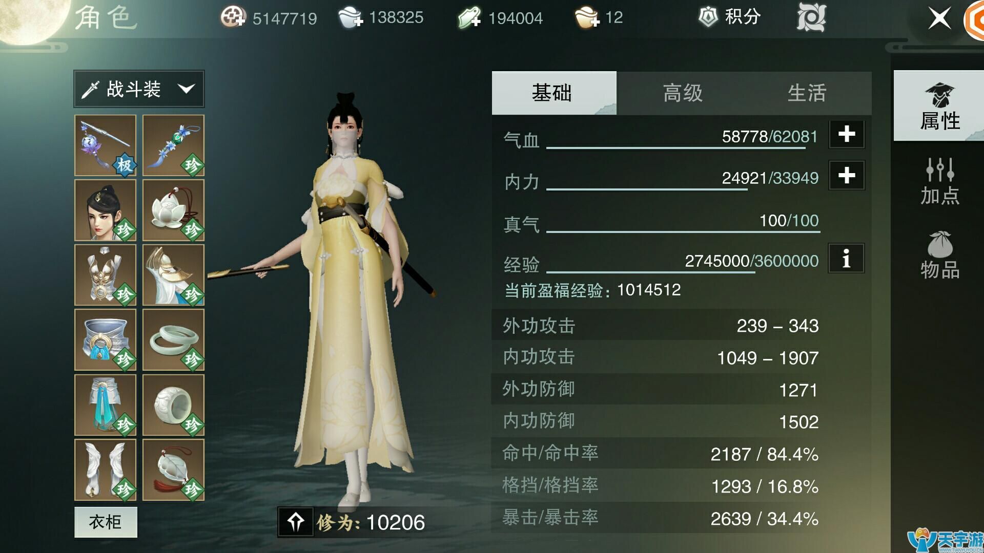 一,出好金秘籍,那么别犹豫,再冲三千,继续一个循环吧。二就是没出好秘籍,那到此为止吧,我们还有其他方法提升修为。秘籍卖了。这时候银两差不多得有一百万了,用来干什么?买残页呗,白蓝绿全买齐,升级,进阶,但切不可心急,因为这东西,只能越往后越便宜,而且有价格限制,永远不会通货膨胀。秘籍是最涨修为的,也是最涨双防的地方,优先秘籍。再说下石头,我觉得性价比最高的是六级石头,砸上两颗属性石头就万事大吉了,必定是奶妈嘛,推荐加点是两套方案,第一套作为前期加点(2气2体)后期装备成型了(4敏)你会发现,即使你全气,加血也没全敏高,当然了,暴击优先堆,石头能用敏的用敏