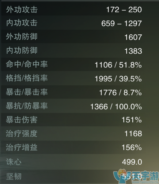 宝石选择:性价比最高属性为全身6级宝石(纯奶优先治疗增益以及治疗效果石头 PVP论剑奶妈优先水属性攻击石头以及水穿石头),命中格挡石头优先7级,格挡流武当面板命中属性欠缺,优先7级命中保证技能命中率,7级格挡提升生存能力