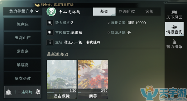 更多手游资讯与攻略,尽在天宇游。天宇游提供海量游戏下载,还可获得丰盛礼包。下载天宇游戏APP,除了下游戏、买卖装备、聊攻略,还能赚钱哦!