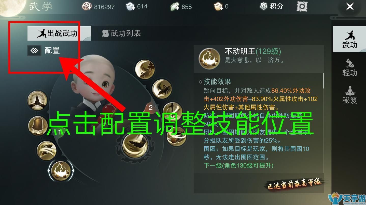 少林比武其实就4个技能,沉默、戳三下、框住、立地成佛。 其他技能都比较废,所以改键尤为重要。