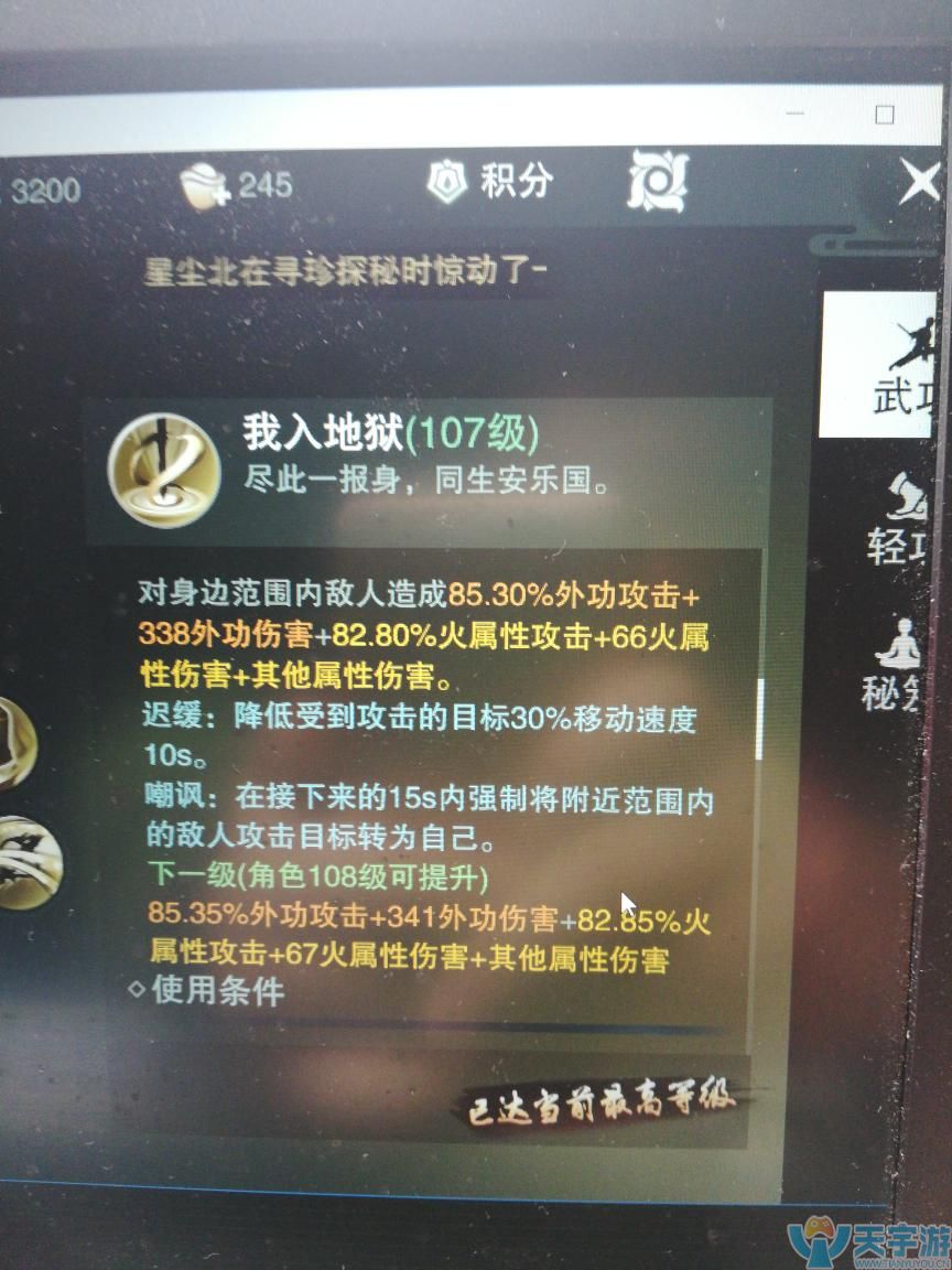 打boos不要用,此技能主要是真气伤害,自己掉20%血划不来。(主要是有其它职业打)除了打敲钟人破真气还有修为高了想打快点用,一般不用。