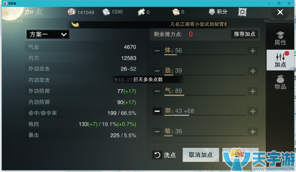 损失太高的生命值。本身双防属性也没有太高的收益。不建议。这一套加点只是我为了推荐给那种有强迫症的,觉得还是得加一点防御更实际的玩家。个人还是不建议这一套的,,当然如果是土豪的来说还是可以。
