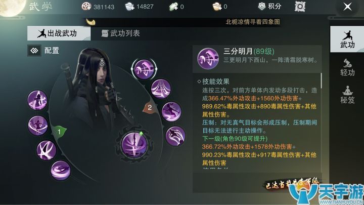 关于加点: 目前主流还是全劲,据说90以后全敏能秒武当,但是我想这个还是建立在修为碾压的情况下 目前我用2套,一套3劲1体,下副本撑点血量,另一个就是PVP全敏,实话说偶尔我也用第一套3劲1体的 因为不容易被秒 暴击率太低,基本不怎么处罚,全敏是为了多点命中。暗香PVP真的太弱了