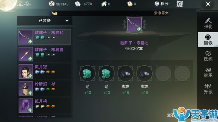 关于石头:数字敏感的应该发现了。我还有三级石头,没办法 不充钱只能靠日常卖点装备转来的钱打石头,目前输出石头 我截图你们也看到了,能打劲的地方全打劲,能打体的全打体 能打敏的全打敏 毒攻是暗香的属性石头,为什么打元抗呢?武当爸爸能打的稍微不疼点吧哈哈
