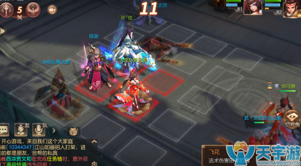 飞花:田字格伤害技能,70%几率拉入田字格内,即禁归状态,可触发坐骑技能“咒阵决”和“破阵击”以及曹操被动。具体看下图: