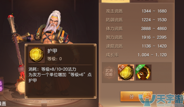1护甲的概念等于护盾(额外的气血)享受当前角色或者武将的防御
