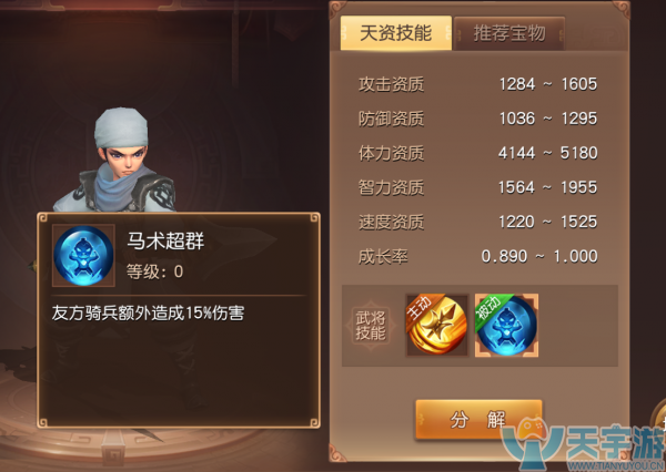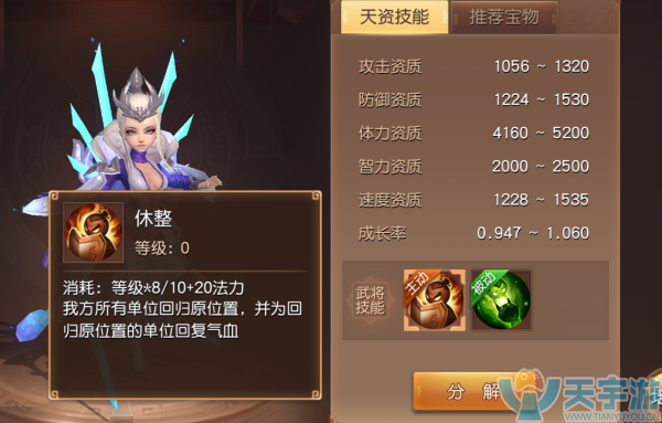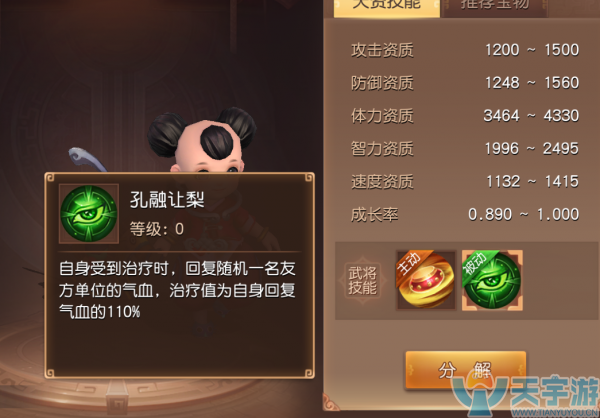 1.主动技能只要一个春潮和治疗的宝物就能加血1100+并且增加15点士气