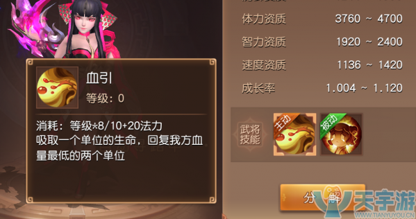 1.主动技能和幽冥的吸血一样,敌人血越多吸血效果越好
