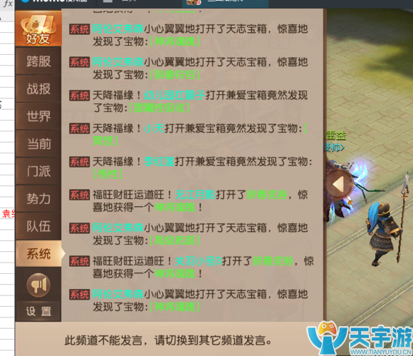 最后,还有个抽天将的诀窍,就是看系统:在天将最密集的时候抽取。像下面这个图,你在这个时候抽取的话就不是很容易抽到天将了