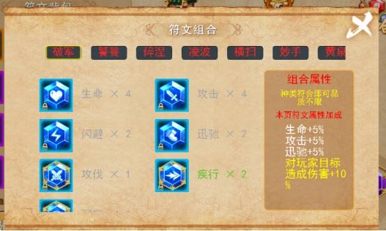 ——符文有组合玩法,每种组合有不同的特殊效果。