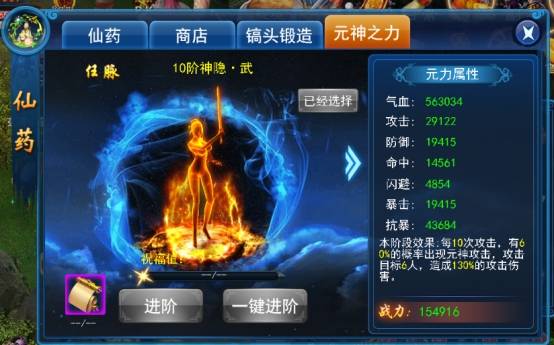 2. 使用无字经即可升阶元神之力,阶级越高,增加属性越强,技能效果也越强。