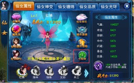 1. 任意仙女达到10阶后。玩家可以进行七仙女升阶。