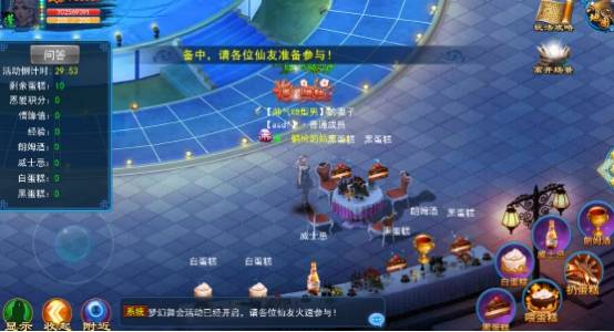 3. 抢亲魔王将在默契答题后1分钟出现,魔王最讨厌舞会食物,使用采集到的蛋糕美酒驱赶魔王,保护舞神紫霞。成功驱赶魔王后,将会获得舞神的奖励。对魔王伤害前3的玩家可获得额外奖励。