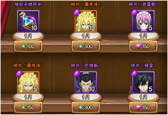 还有就是 多推图,打主线,纳兹暂时用不到的碎片可以先转换来换自己的人物,另外就是打主线剧情送的280钻石的卷子,一定要一次性10连才可以,不然死亏!