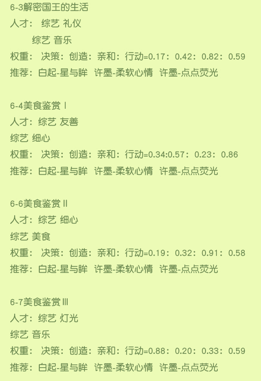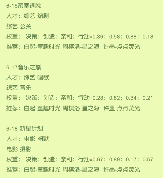 (粉卡:主属性为亲和力 绿卡:主属性为行动力 蓝卡:主属性为决策力 粉=橙卡:主属性为创造力)