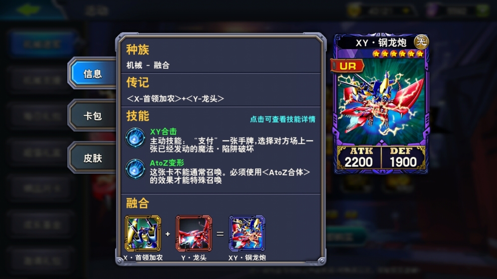 而新版的XY钢龙炮已经成为稳定的狙击手了,支付一张手牌破坏一张指定的魔陷卡。而且解决了融合卡组一个非常头痛的问题,非常吃融合。他的融合素材中的Y和Z入场可以拿到一张魔法卡,靠它可以除外素材从额外卡组把XY钢龙炮召唤出来了。