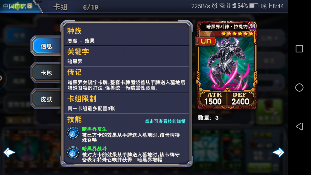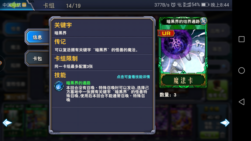 不用祭品,遗言怪,检索关键卡的怪兽,那样太慢。咱们通过暗黑界的效果直接在第一回合就上场1-3张大怪。2-3回合结束战斗,任凭对方卡组中有多么牛逼的神卡,也无能为力。