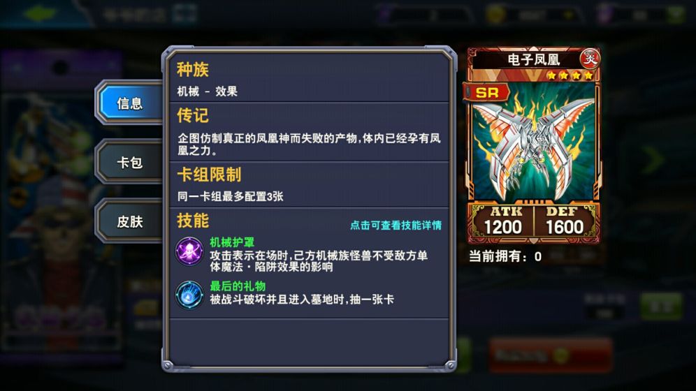 先说一下它过牌的卡牌。机械猎鹰加电子凤凰。猎鹰是常规的遗言怪进入墓地拉去一张一千五机械族怪兽,而电子凤凰可以说算是强度很接近UR的卡了,上次冰结界卡包出的冰凤二围极低就一个过牌效果都引起了大量玩家的兑换,而电子凤凰更是强大,攻击表示不受单体魔陷,代表着这套连锁不会因为被穿刺陷坑等吃掉导致亏卡,能更稳定的从卡组拿牌。