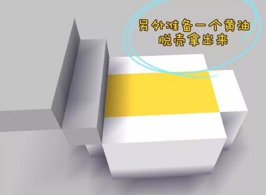我们首先将黄油准备好,这可是蛋挞香喷喷的一个重要原因。同时准备好蛋皮,将蛋皮赶成薄片然后制作成与黄油相同的大小。