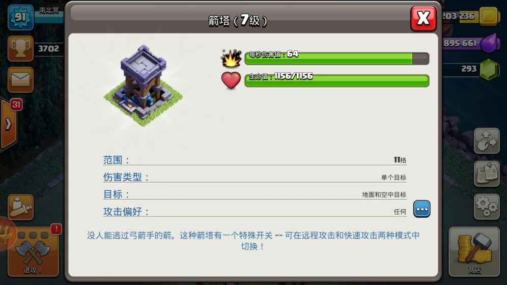 随后的箭塔完全就是因为它的双防能力以及攻击范围,防空火箭倒是专门用来防御飞龙宝宝,因为亡灵数量太多,从击杀速度上来讲,防空火箭还比不上电磁塔,如果不是为了防守飞龙宝宝,可以优先升级电磁塔。接着就是撼地巨石,炸弹发射器。之所以将这两个建筑放在这里,是因为他们的针对性实在太强,要么就是无作为,要么就是攻击特性太脑残,比如说炸弹发射器,不仅攻击速度慢,而且气球炸弹很容易被引开,导致区域溅射的效果一点用都没有。撼地巨石更别说了,6级巨石和7级巨石差的就是血量,在击杀胖子时需要攻击的次数相同,因此没有多的提升。