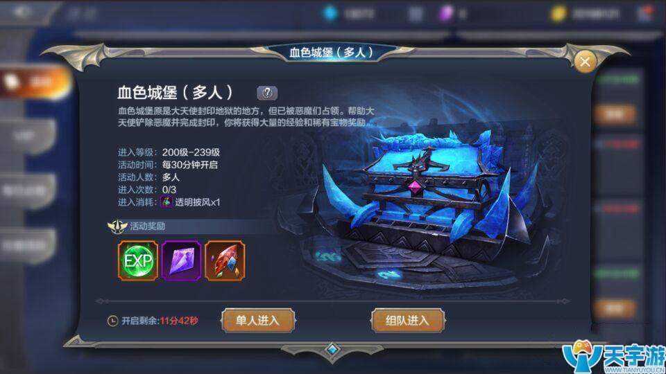 血色城堡是平民玩家获取宝石最简单的方法之一了,可以跟好友一起,可以自己单独进入。不过每天进入的次数只有3次,一定要珍惜。