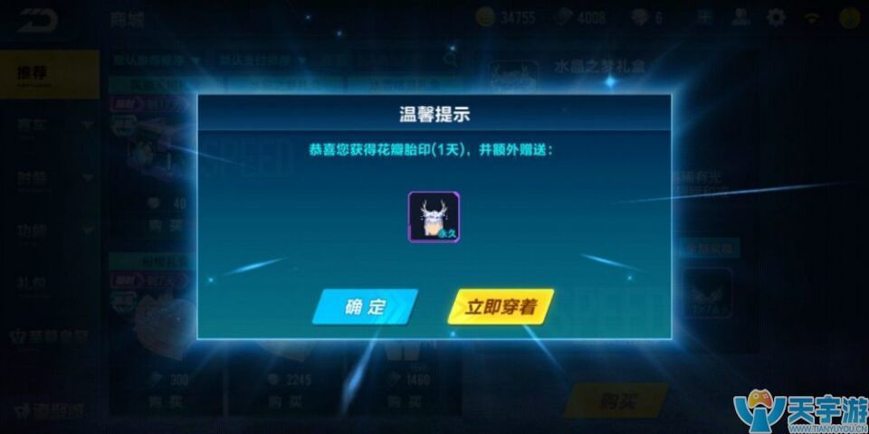 小编抱着试试水的态度,我开始了抽奖之路,作为一个佛系女孩,抽不到没关系反正也有其他奖励能安慰一下嘛,就算我抽不到,别人能抽到也是可以的嘛。那就随便点点好了,有则安之没有也没关系。先单开一个吧,大概开出的是胎印或者漂焰吧……等等?!我怎么看到了“永久”两个字?这不是我心心念念的水晶之梦发饰吗?银白色的长卷发搭配水晶鹿角,这么仙儿的发饰真的被我一个秒到了!是我诚挚的心感动了天美感动了飞车吗?在座的脸黑非洲人要不要来吸收一波欧气嘞~