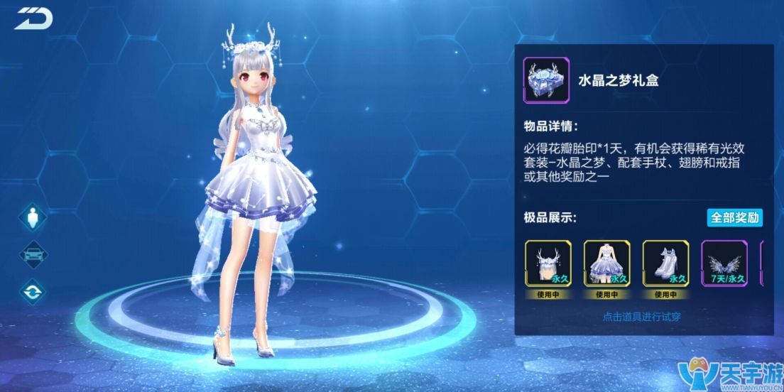 A车天启礼盒,套装水晶之梦礼盒,点券宝箱啦改装科技箱啦,就没有我想不到的箱子,那么问题来了,资金库有限的我,抽哪个箱子好呢?经过一番思量,飞车美衣控的我把罪恶的双手停在了套装礼盒上,面对这些极品礼服,让我忍住不抽,我做不到啊~