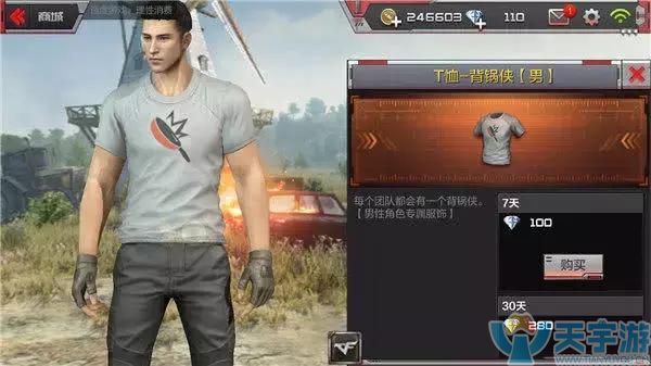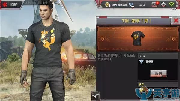 再来说说这第二款T恤,名字叫猎手,听名字就觉得很冷酷,很厉害的样子有木有?所以小编觉得这件衣服比较适合那些钢枪大神,穿着这件衣服在荒岛特训里疯狂杀戮,然后让普通玩家看到这件衣服以后闻风丧胆,这样岂不是很有乐趣呢?