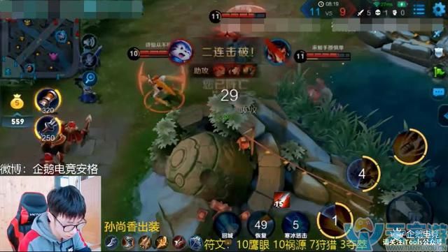 但是很快安格孙尚香就被一次反击团殴了,可以看到安格孙尚香在野区团战后,被打成了残血,即使是有队友明世隐的辅助,两个都是残血在状态。可能诗仙记仇,必须要换回面子,直接位移从中路野区草丛追杀残血孙尚香。
