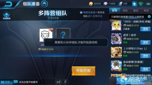 五军对决的相关规则相信各位玩家都已经了解了,就不和大家废话了。这几天大家玩五军对决的话,肯定有一点是深有感触的,那就是必须要和一个游戏好友组队开局,否则会提示“需要和小伙伴组队才能开始游戏呦”。