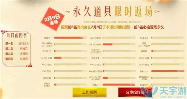 投票前6名有机会在2月9日于本活动限时返场,前3名必定返场永久。