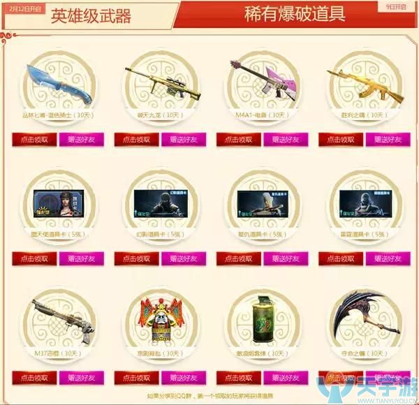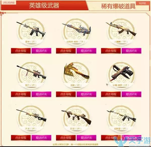 还有一个惊喜是在这个板块中,只要你领取到了什么道具,不管是英雄级武器还是稀有爆破道具,都可以任选一名好友将同样的福利奖励赠送给好友,意思说我们自己同样也可以领取到好友赠送的这些福利道具。