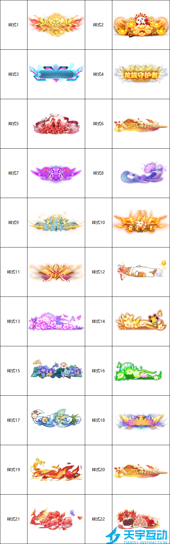 异兽在山海(0.1萌宠仙侠高爆版)霸服冠名活动【活动时间】:永久【申请方式】:需联系平台客服申请,提交冠名文案,领取冠名礼包码奖励(节假日顺延)。【活动规则】:申请条件1:首位累充达1000元(实付)的玩家即可申请冠名+【荣耀冠名礼包】*1(保护期3日)申请条件2:首位累充达2000元(实付)可获得服务器更名权+【豪华冠名礼包】*1(超出保护期才能更名)申请条件3:首位累充达5000元(实付)的玩家可申请“永久冠名”+【至尊冠名礼包】*1。无需等待保护期结束,可直接冠名) 【荣耀冠名礼包】:高级时装炼神丹*3,史诗宠物蛋*10,10级生命宝石*1,10级攻击宝石*1,10级防御宝石*1【豪华冠名礼包】:珍品宠物技能书*1,红色百宝箱*1,随机进阶丹*100,体力丹*1,三品随机仙丹*2【至尊冠名礼包】:珍品宠物技能书*2,萌宠令*20,红色洗炼符*10,体力丹*2,三品随机仙丹*4 【注意事项】:1、获得冠名权的玩家可以修改所在区服名称一次,服务器名称不超过4个简体汉字,名称不可出现特殊符号、侮辱或敏感词等违规内容;2、每个服务器冠名权只有一次,满足申请条件的玩家可获得冠名礼包一份。达到条件没冠名到没关系,未冠名者还有一个机会可申请领取“冠名礼包”。3、活动期间,以充值最高金额为准,高档位可以领取低档位(可叠加),比如充值5000元(实付)可以领取全部档位礼包码,每个角色每个档位只能能取一次。4、在游戏及其他活动中获得的充值卡、代金券、现金券等充值均不计入线下活动;5、活动最终解释权归游戏方所有。 异兽在山海(0.1萌宠仙侠高爆版)单日大额自选活动【活动时间】:永久【发放方式】:需联系平台客服申请,邮件发放(节假日顺延)。【活动规则】:1、活动期间,单日累计充值满500元(实付)可拥有自选道具申请条件,只计算单日金额,不能叠加计算;2、单日达到充值条件(额度足够情况下可自由搭配等值道具内容和数量)的玩家,选好道具后可向平台客服申请发放;3、在游戏中及其他活动获得的充值卡、代金券、现金券等充值均不计入线下活动;【奖励内容】:道具单日累充实付道具单日累充实付赤云焰章*1(定制传闻)5000火德真君*11000金辉暖曦*1(定制传闻)5000九龙帝环*11000花屿晴光*1(定制传闻)5000肃杀金环*11000司凤女帝*13000真元火德环*11000UR法阵宝箱*13000青扇云岫*1(定制传闻)1000吉星高照*13000金色装扮箱*1200如意福锤*13000人身龙首神*1150宏图大展*13000帝江*1150瑞气祥狮*13000肥遗*1150魔灵晚礼服*13000九尾*1150奇妙梦魔方*13000中山神*1150启晨者之钟*13000相柳*1150缤纷魔力车*13000邢天*1150仙宫荷月*1(定制传闻)3000白泽*1150青龙*13000织天*1150白虎*13000琅霄女帝*1100朱雀*13000法魄冰晶*1100玄武*13000绯红脉络*1100卯神玉兔*13000赤将子舆*1100烛照*13000凰羽宝环*1100圣兽提品丹·彩*13000红色装扮箱*180圣兽提品丹·金*11000卓越属性石*150圣兽提品丹·红*2500炼器幸运符*150圣坤女帝*11000圣兽重置丹*150晗光千瞬*11000顶级宠物技能书*150东皇太一*11000橙色图鉴宝箱*150金神蓐收*11000 异兽在山海(0.1萌宠仙侠高爆版)好评有礼活动【活动时间】:永久【领取方式】:需联系平台客服申请,领取礼包码奖励(节假日顺延)。【活动内容】:在平台给予15字以上5星好评,并附上游戏截图。【活动规则】:每个玩家限参与一次。【奖励内容】:高级炼神丹*1,洗髓露*10,高级宠物经验丹*10,初级宠物蛋*3异兽在山海(0.1萌宠仙侠高爆版)绝版称号定制活动【活动时间】:永久【发放方式】:提交平台客服申请后,称号会在制作完成后(约14个工作日)发送至玩家邮箱。【活动规则】:1、可用于定制称号的外观款式,请联系平台客服自行选择。只可申请最高档位,每天限定申请1个定制称号;2、定制名称限定1-8字以内,内容不得包含辱骂、政治、非文明等敏感字眼,否则将取消定制资格!3、自平台客服提交定制需求后不可再次更改内容相关信息。4、称号数值随具体情况变化而变化,没有具体的战力提供【活动内容】:申请条件1:单日折后充值1000元(实付)可额外定制三字绝版称号一个;战力(120000):生命+10000、攻击+4000、防御+1000可额外定制属性(6选1)坐骑进阶属性+10%、神兵进阶属性+10%、羽翼进阶属性+10%、法宝进阶属性+10%、武神进阶属性+10%、光相进阶属性+10% 申请条件2:单日折后充值2000元(实付)可额外定制四字绝版称号一个;战力(180000):生命+15000、攻击+6000、防御+1500可额外定制属性(6选1)暴击伤害增加+2%、暴击伤害减免+2%、坐骑进阶属性+12%、神兵进阶属性+12%、羽翼进阶属性+12%、法宝进阶属性+12%、武神进阶属性+12%、光相进阶属性+12% 申请条件3:单日折后充值5000元(实付)可额外定制六字绝版称号一个。战力(240000):生命+20000、攻击+8000、防御+2000可额外定制属性(6选1)暴击伤害增加+2.5%、暴击伤害减免+2.5%、坐骑进阶属性+15%、神兵进阶属性+15%、羽翼进阶属性+15%、法宝进阶属性+15%、武神进阶属性+15%、光相进阶属性+15%【注意事项】:1、在游戏中及其他活动获得的充值卡、代金券、现金券等充值均不计入线下活动;2、活动最终解释权归游戏方所有。AA定制称号样式 异兽在山海(0.1萌宠仙侠高爆版)永久累充活动【活动时间】:永久【申请方式】:需联系平台客服申请,领取礼包码奖励(节假日顺延)。【活动规则】:活动期间,以充值最高金额为准,高档位可以领取低档位(可叠加),比如充值10000元(实付)可以领取全部档位礼包码,每个角色每个档
