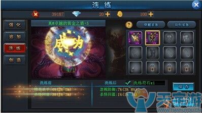 第3步:洗练 开启等级 37级 通过消耗“洗练符石”,玩家能够对装备的属性进入洗练,但并非所有的装备都可以进行洗练,只有卓越装备的卓越属性才可以洗练。卓越装备的卓越属性往往有一定的范围值,如果玩家对卓越装备的卓越属性不是非常满意,可以通过洗练来洗出自己想要的卓越属性。