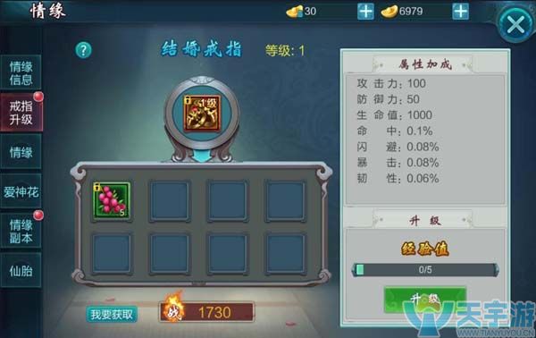 2.消耗爱情戒指和爱情果可以升级戒指;