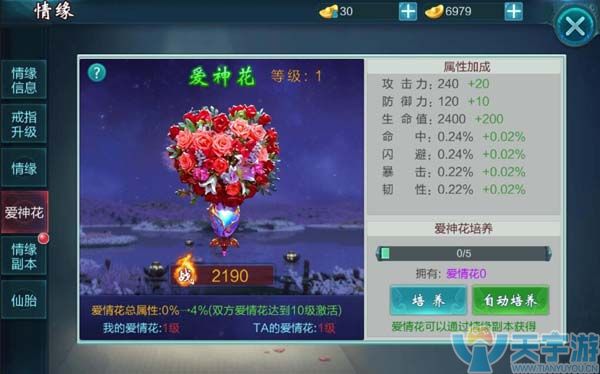 1.结婚后开启爱神花培养系统,消耗爱情花进行培养升级,爱情花通过情缘副本获得。