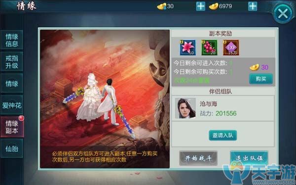 2.情缘副本每天可以进入2次,首次免费,第二次需要任意一方进行购买,另一方也可以获得相应次数;