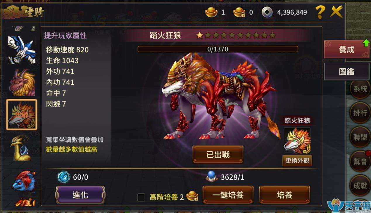 坐骑可以进行培养,进化,培养进化后可以提升玩家属性哦