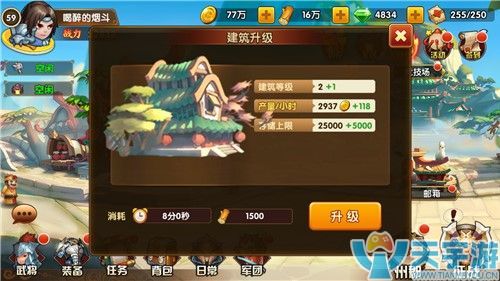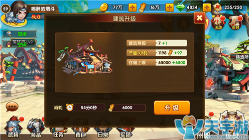 小编特别推荐,前期的金币木材不要急于用于其他地方,为建筑升级,让他们有更大仓库储量上限,有更厉害的制造能力,就有源源不断的金币和材料入库,以后在建设城防,升级武将等关键环节中发挥中坚力量。