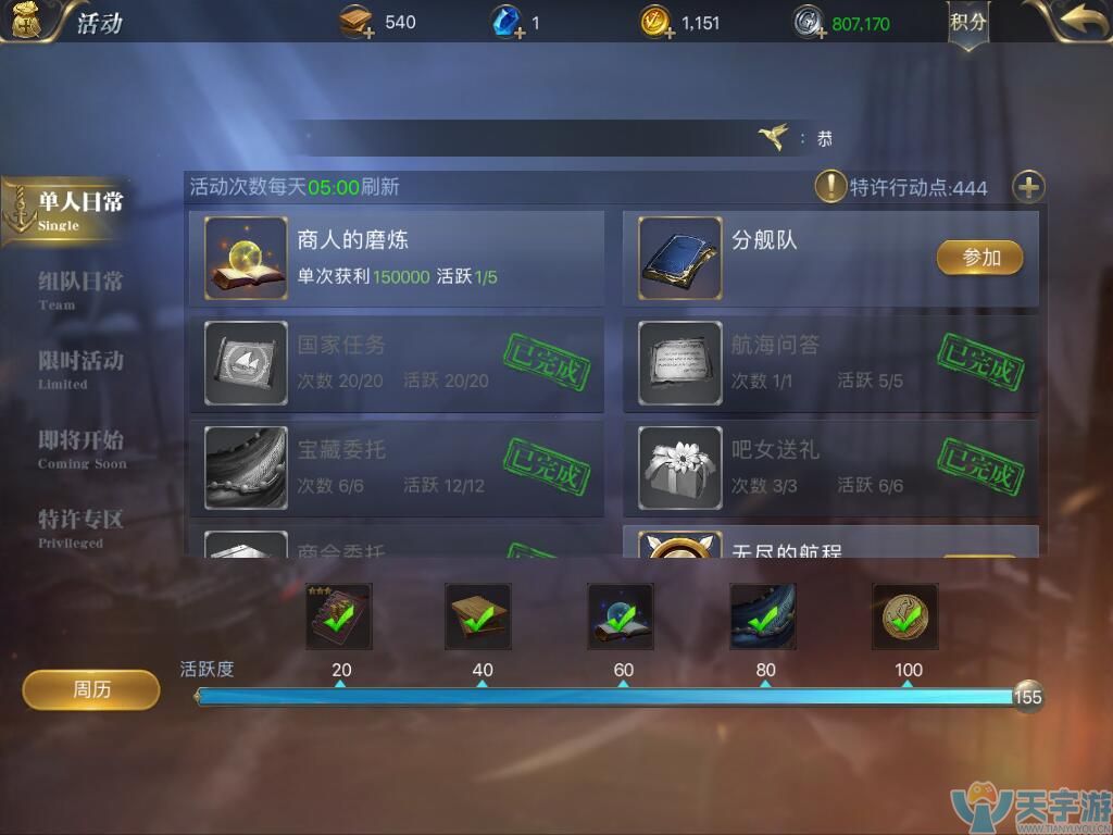在《大航海之路》游戏中有很多日常活动任务。常见的日常任务分别有国家任务、分舰队、环游欧洲、商会委托收集珍贵物品以及宝藏委托等等。下面就让给我们来看一下这些日常活动的玩法吧。